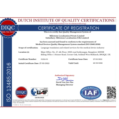 “As a medical device company, we transitioned to EUMDR compliance in 2022 and needed translation on our IFUs in 22 international languages. We found Milestone Localization was best suited to do this work for us. Since then they have been our regular translation service provider with 100% on-time delivery of documentation.”