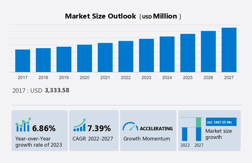 The medical devices market in Africa is projected to grow significantly, with a CAGR of 7.39% from 2022 to 2027, increasing by a market size of USD 1,967.35 million. By the end of the forecast period, the market size is expected to reach USD 7069.61 million at a CAGR of approximately 6.3%.