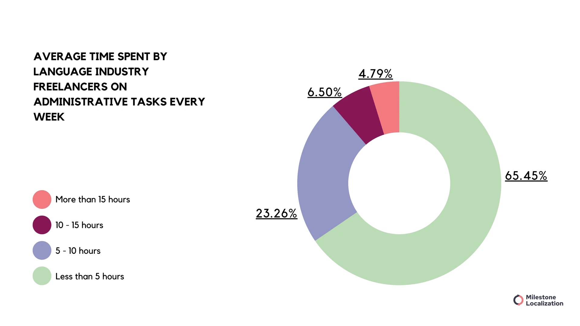 - 65.45% of freelance linguists spend less than 5 hours per week in administrative activities