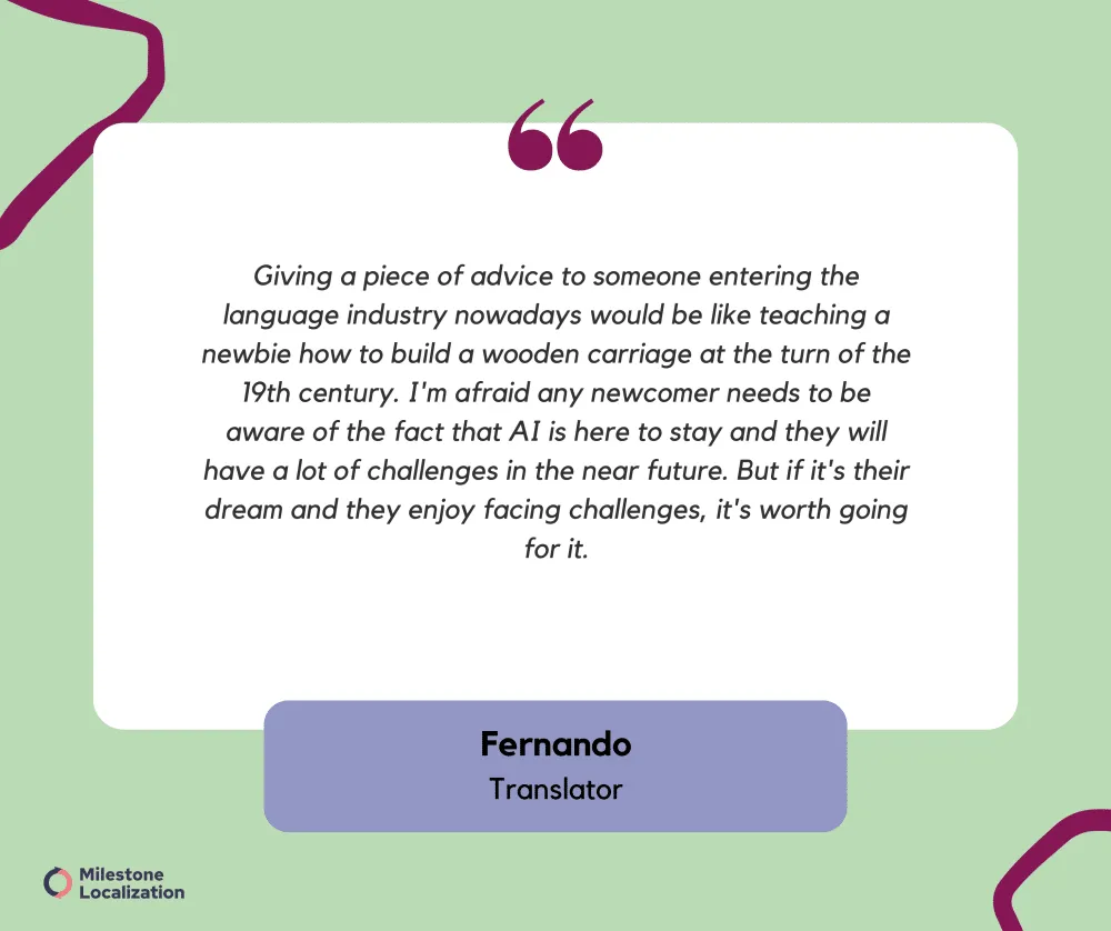 “For those interested in becoming freelance in the language industry, my advice is to research and understand the industry you plan to work in, make sure you have a strong portfolio of language-related projects, develop your network by taking part in online and offline initiatives related to the industry, and stay informed about current trends.”
