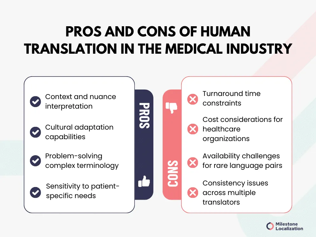 What are the main advantages of human translation in healthcare?