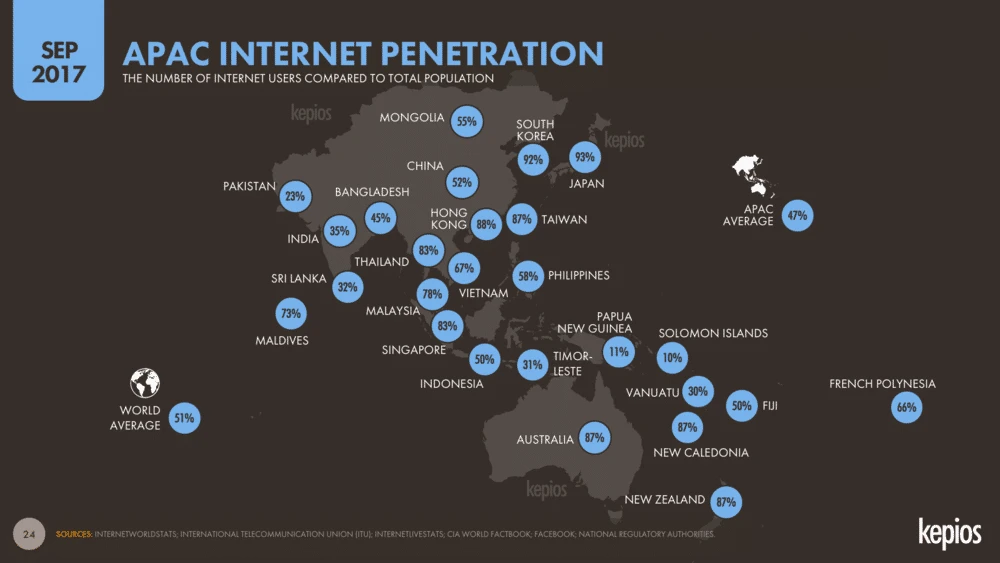 The Asia-Pacific region is home to over half of the world’s population. What’s more, the APAC region has one of the fastest-growing digital user bases in the world. China alone has gained over 35 million new internet users in just this past year.