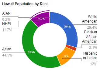 The Asian population on the Hawaiian Islands is the biggest ethnic group with 540,556 people (44.5%), with huge Chinese, Filipinos, Japanese, Korean and Vietnamese communities living on the Islands.
