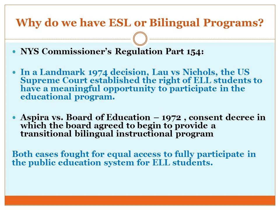This approach began formally in 1969 with the establishment of the New York State Education Department’s Office of Bilingual Education, which provided support to school districts offering programs for limited English proficient students.