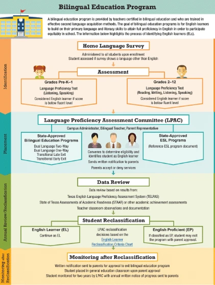 Additionally, Texas law allows for the implementation of dual language immersion programs, where students, regardless of their language background, receive instruction in both English and another language.