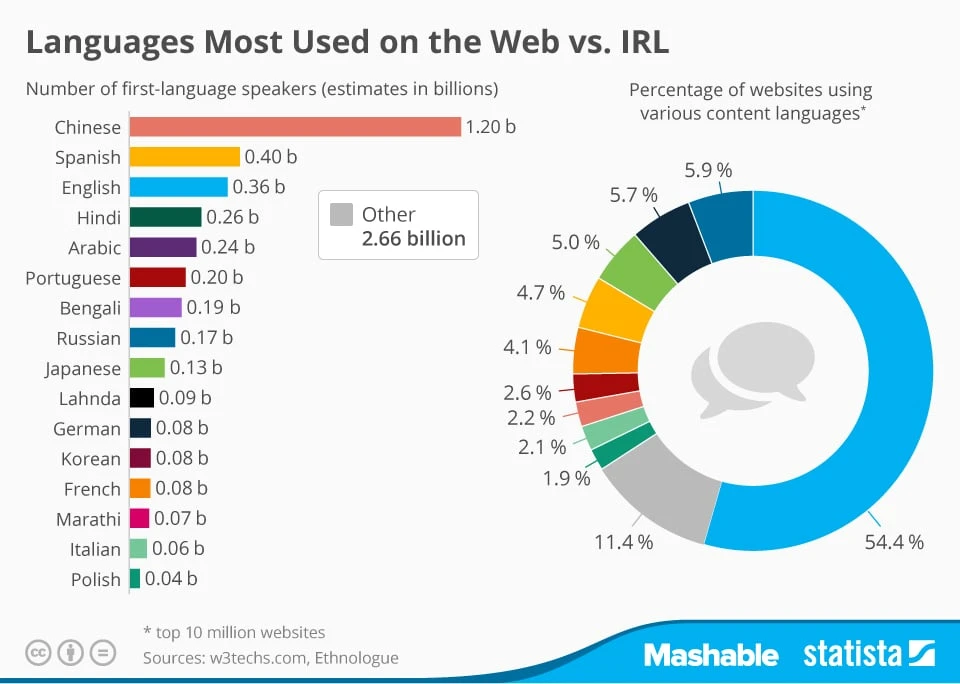 According to Statista, less than 26% of web users use English to search, read or write content. On the other hand, over 60% of all websites are in English. This means that a huge number of web users are underserved.
