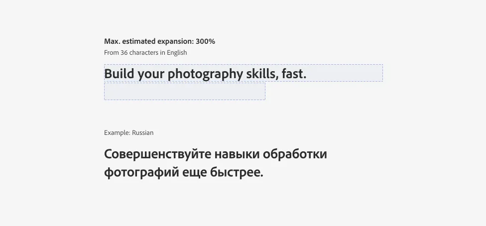 Text expansion is very common in translation and localization. For example, texts translated from English into German are usually much longer and, thus, take up more space.