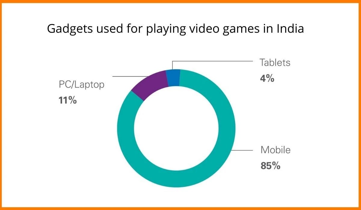 In India, over 85% of all video games in India are played on smartphone devices, while PC and tablet users form around 11% and 4% respectively.